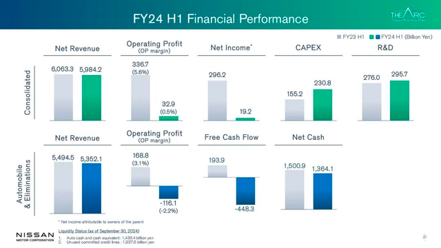 具体来看,日产汽车的生意收入为98万亿日元,较客岁同期下滑3%;生意利润为308亿日元,同比大幅下滑2%。更为严峻的是,日产汽车在第二财季(2024年7月至9月)出现了4亿日元的净亏蚀,而客岁同期则为盈利1907亿日元。这一浩大反差,给日产汽车的财务气象蒙上了一层暗影。