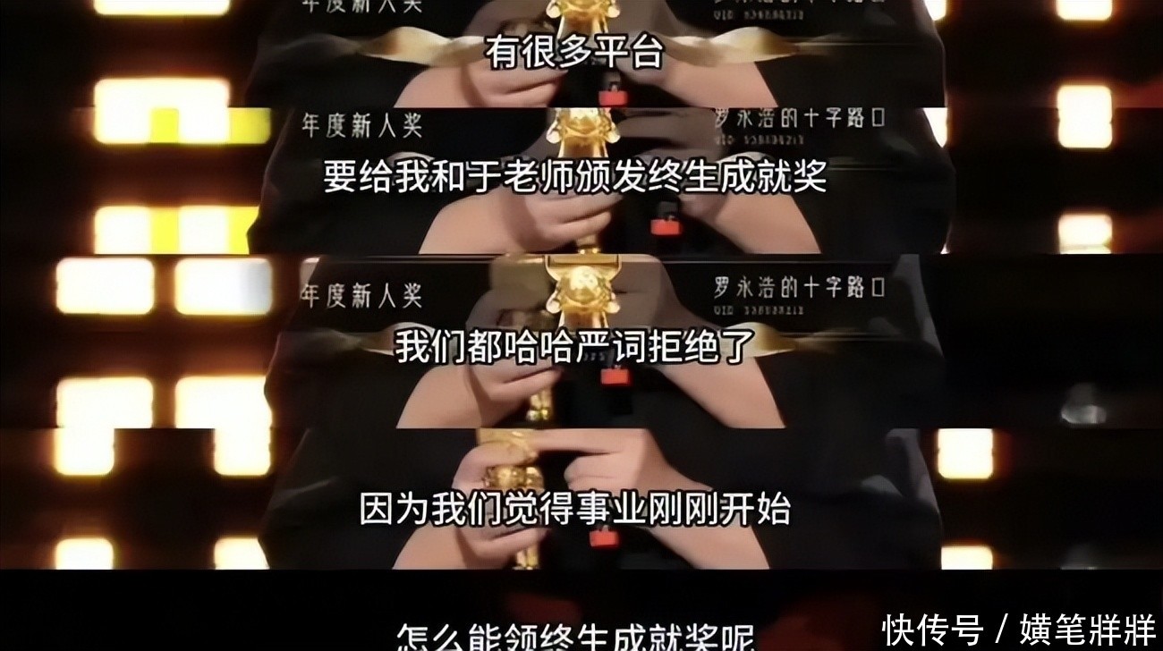 当于谦与罗永浩一同登台,领取“年度新东谈主奖”时,现场掌声雷动。